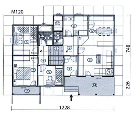 Dimenzije osnove 12.28 x 9.74 mPovršina osnove 101.28 m2